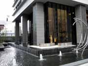 玄関前には噴水を配置。「水の街中之島」をイメージしているのだろうが管理費が気になるところだ。