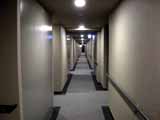 廊下は内廊下。台風の時にも風雨が吹き込まなくて快適な都市生活を送れます。この光景にホテルと同時に監獄も連想した私は・・・住まない方がいいかもね。