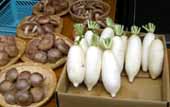 浅草の八百屋の店頭に並んでいた辛味大根、一本百円也。この太さ&短さがCawaii!!!