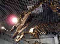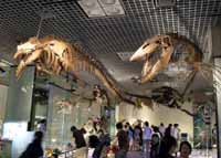 上野・国立科学博物館「地球館」海の恐竜コーナーでは、巨大な骨格が同一方向を向けて展示されている。