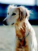 左は国立科学博物館にいたオリックスの剥製で、右がビーチで遊ぶサルーキ種のイリちゃん。