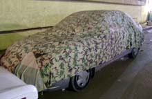 派手な車のカバー。手作り感いっぱい。でもこういうカバーはそこかしこで発見した。