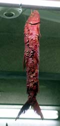 干物屋の店先にぶら下がっていた罰ゲームでしか食べたくないような魚。