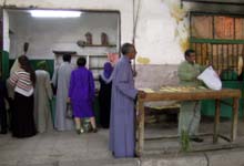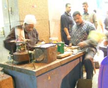 エジプト人の主食はパン。パン屋さんの店先で、くわえタバコでパンを袋に入れる店のおやじ。ね、シャーディー率高いでしょう?!
