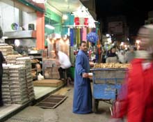 半径10メーターに鼻がもげるような臭いをまき散らしているのは干物屋さん。 日本の干物のようにきっぱりと干からびておらず、微妙にナマモノ感&汁気を残している。 このオヤジは客が買った干物を缶に詰めてバーナーでふたを焼き付けている。密封しなくちゃならんほど臭い魚の干物は、パンに挟んで食べるそうだ・・・