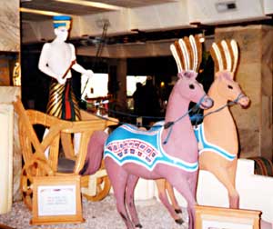 (←)とある高級ホテルのロビーにディスプレイされていた「ラムセス二世像」(のつもり) いっそ飾らない方がいいんじゃあ・・・と言うとマネージャーは傷つくだろうか。 |