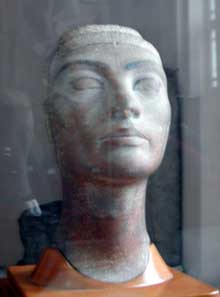 ネフェルティティの胸像としては、ベルリン博物館に収められている片目の無い彩色頭部像が有名だが、私はむしろこのカイロ博物館収蔵品(左)の方が、シンプルが故に削ぎ落とされた美をまとっているように思えて好きなのだ。 初めて対面する実物は、指紋でベタベタになった曇ったガラスを隔てて、他の小さな発掘品と共に地味〜な感じで並べられていた。 エジプト史をちょっとだけかじった今では、種々の事情でネフェルティティへのあこがれは消え失せたものの、少女の頃には「私もいつも頭を高く掲げて生きよう」と理想の女性像として胸にしまっていた女王の像。 カイロ博物館に来て、アヌビスやツタンカーメンの椅子やこの女王像など、昔から写真で飽かず眺めた美術品の数々を実際に目の当たりにすることが出来ただけでも、エジプトに来た甲斐があったというもの。 それも全てはあの日ジャンプを開いたことに端を発するとは・・・萌えは偉大なり。