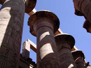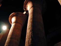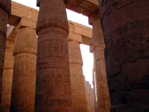 ![]() 大列柱室。古代にはこれらの柱は天井を支えており、ここに差し込む明かりといえば小さな高窓から入る光だけであった。 天井のない状態の現代でも冷たく薄暗いのに三千年前はさぞ・・・と想像するとなんかすごく萌えた。 |