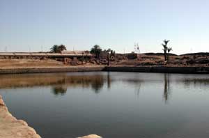 ![]() 神殿横の聖池。ここでお勤めの神官達が水くみをしたり沐浴したりしたところである。全裸の神官を想像し、興奮のあまり池の生水をがぶ飲みしそうになったが、腹でボウフラが湧くと困るので思いとどまった。 |