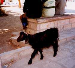 それは134本の列柱が立ち並ぶ「大列柱室」。 これらの列柱はアメンホテップ三世が「その柱は天空の四つの柱の如く天空に達す」と述べたとおり、エジプト神話に於ける「天を支える柱」としての象徴的な意味合いも付与されており、また「原初の湿地帯」に繁茂する植物群を象徴するものでもあったそうだ。 すべては神の御為という信仰心から作られたその場所は、数千年を経てもなおひんやりとして神聖な空気を残している。大きいものでは21メートルに達するという巨大なパピルス型列柱が居並ぶさまは緊張感あるバランスを保ち、柱の一本一本が品格に充ちた佇まいですっくと空に向かって伸びている。その光景は正に「創世の丘を取り巻くパピルスの林」そのもの。 例えようもなく美しいその姿に胸を締め付けられ、こっそり柱の一本に抱きついて物思いに耽る乙女のように冷たい石灰岩にそっと頬を寄せてみた。 このカルナック神殿については「感動した」「素晴らしかった」等のありきたりの言葉しか出てこないほど、またどんな言葉で表現しようとも陳腐に思えたので、この項はこれにて収めさせていただきたい。 語り尽くせないほど美しく、そして何だかとて 野良ヤギの母。子を連れてウロウロしていた。帰るおうちはあるのだろうか。まぁ多分飼い主いるよね、ヤギだし。 写真を撮ろうと追いかけるとおびえた顔で逃げていった。 後ろのベンチでは白人のオッサンが三人、鈴なりになって座っている。なにもそこまでぎゅうぎゅうに座らんでも・・・ 「メジロ押し」という言葉って当たってるよなぁ。 |