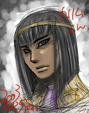ギイさん初描きカリムを奪取!そして乙女のカリム萌えなトークも一緒に強奪してきました。いや、ほんまカリムは頼れそうなええ男ですな。四六時中千年秤を握りしめてる点さえ除けば(笑)
