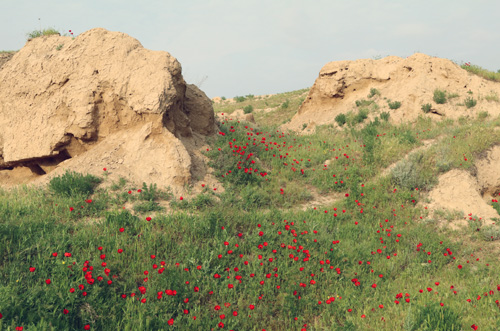 ゾロアスター教の遺跡ではポピーの花が満開で、気分はタジキスタンの少女ハイジ。