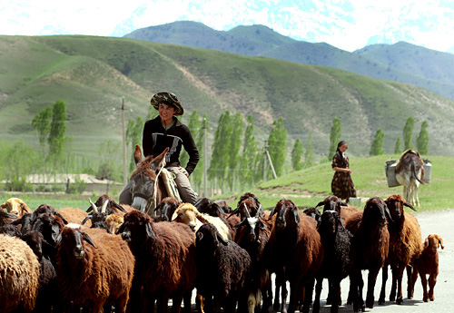 トルキスタン山脈を越える手前で出会ったアンちゃんと羊たち。