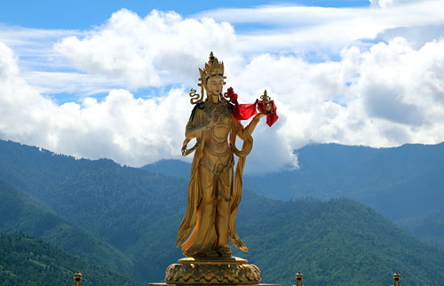 中国とインドの技術者の協力を得て完成した仏教施設にて、衆生を極楽へといざなう観音様。