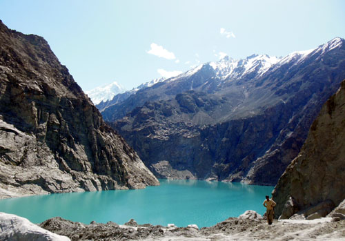 ![]() ……って話じゃなくて、砂ぼこり舞い立つ灰褐色の道をひたすら行った先に、突如として現れるミルキーブルー。 これは2010年に発生した地滑り災害で土砂が川をせき止めた結果発生した、全長21Km、深さ100mの湖なのだ。 |