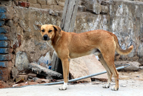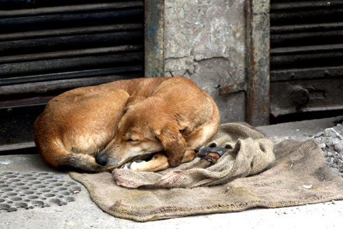 ![]() 野良か飼い犬かは定かではないけれど、布を広げて二枚重ねにしてやったのは人間にちがいない。 (インド シッキム) |