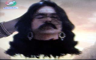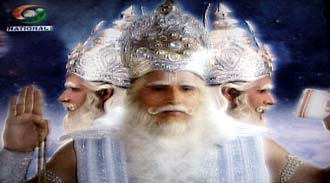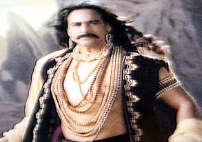 こういうジジイが登場してようやくピンときた。きっと神話をベースにしたインド版大河ドラマなのだろう。 それにしてもクドい。一つだけでもクドい顔が三面も!