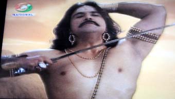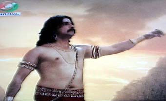 ヒンディー語?が読める人、タイトル教えてください。 まー分からないながらも、中央の男を後ろの二人が支えつつ、悟りを開くとか王国を取り戻すとか悪を滅ぼすとか、なんかそういう感じのアクションを起こすドラマと見た。