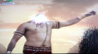 インド神話のことは全く知らないので、ちゃちいCG製の光の束で拘束されたこのオヤジがなんてキャラなのか分からないのが残念だ。 それにしてもクドい、ソースカツ丼よりクドい。