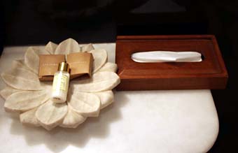 いかにもリゾートホテルっぽいリュクス感あふれる洗面台。それなのに歯ブラシと歯磨き粉はなかったから、ヘボピーと一本の歯ブラシを使い回す羽目に……。歯ブラシくらい置いとけ。