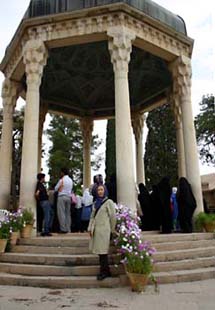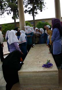 花を捧げる人々の横では、ハーフェズの詩集を小さな声で朗読する若い女性。私たちが行く前からいて、帰る時までずっとこうしていた文学少女。