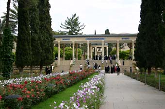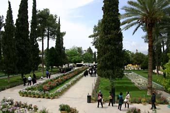大詩人の霊をお祀りしているハーフェズ廟から庭園をのぞむ。