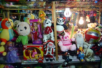 おもちゃ屋のショーウインドウはどこでもこんな感じのカオスっぷり。