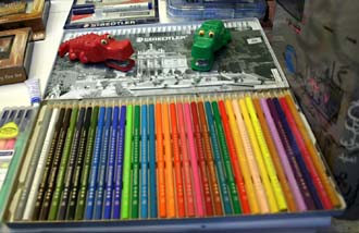 テヘランの文具店にて、子供のあこがれゴージャス色鉛筆。色のセレクトが外国っぽいよね。