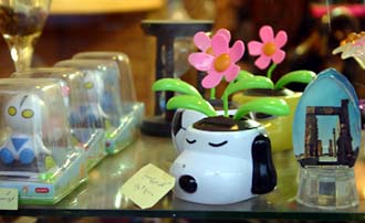 首ふりウルトラマンもどきと、イラン屈指の観光地であるペルセポリスより、クセルクセルの門をあしらった目覚まし時計?文鎮? そしてスヌーピーとダンシングフラワーが融合した謎のアイテム。スヌーピーが眠っているのも微妙なセンスだ。