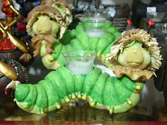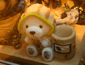 いま写真を見直して、あまりにもムカッとくるあまり、かえって「買っとけばよかった!」と後悔しているキャンドル立て。 三匹も並べられているあたりからすると、仕入れた店主はもー売る気マンマンである。