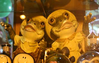 カエルも人気アイテムのひとつのようで、あちこちの土産物屋でさまざまなデザイン(たいてい微妙にリアル系)が観察された。