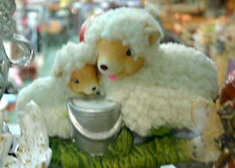 キディランドで売ってそうなヒツジ親子の隣では、ダイソーでも売れ残りそうな布袋さん。