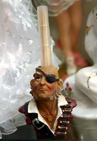 つまようじ立て。なぜそこで海賊なのか、デザイナーの動機は不明だが、よく見ると細かい塗りとか無駄にいい仕事している。