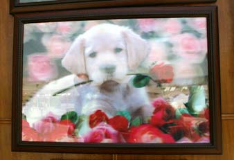 いや、可愛いんだけどね……。私もすっごくワンちゃん好きだけどね、バラをくわえた犬の絵を家には飾りたいとは思わん。