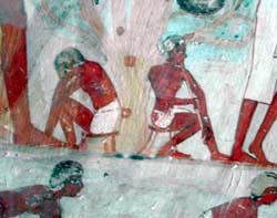 しかしナクトやメンナといったいわば中級官吏の墓には、当時の絵描きがある程度好きなように絵筆をふるった跡が見られて、なんだか心が暖まります。