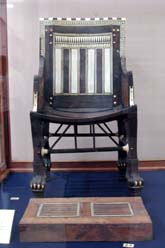 ツタンカーメンが子供時代に座っていたという椅子と足置き台。黒檀に