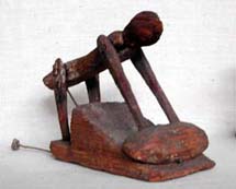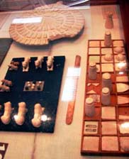 ![]() ツタンカーメンの遺物展示通路から脇に入った人もまばらな展示室、そのガラスケースの隅でひっそりとパンをこねるおもちゃ。ひもを引くとカクカク動くのだろう。 古代エジプト人は子供をとても可愛がった人々だと言われており、こういったお手製のおもちゃも色々発掘されている。 |