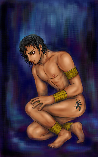 また、裸にポイントが欲しかったので入れ墨を入れさせて頂きました。 古代エジプトにおいて入れ墨は肌を飾るものとして、 踊り子や愛人の間で時折なされていたようですが、上層階級がしていたかどうかは未確認です。