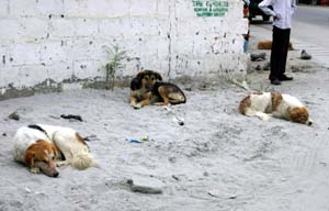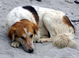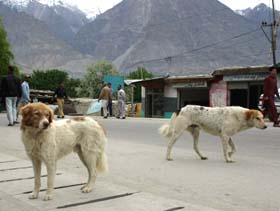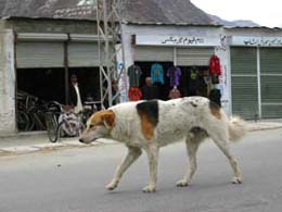 <パキスタンのわんわんお> コーランのどの箇所に示されているかとか、なぜそうなのかといった詳細はちゃんと調べたことがないけれど、イスラームでは犬は不浄な動物とされるらしい。 しかし同じイスラーム世界であっても、国によって犬への対応には若干の違いがあるのでは?となんとなくだが思うのだ。 たとえば、実際にサウジアラビアには行ったことないけれど、ケンネルクラブの会報によればかの国では、犬を見ようものなら石つぶてを投げて追い払うほどの嫌われっぷりと聞く。 一方、西欧化の進んだトルコの都会では、綺麗なリードをつけて主人と歩いているペットドッグをちょくちょく見かけた。 イランでは旅行中にただの一度も犬を目にすることはなく、エジプトでは遺跡に住み着いている柴くらいの大きさの犬を見かけたものの、観光客からエサをもらって細々と生きてる感じ。 カイロのペットショップや、バザールの動物市場ではキリスト教徒向けなのだろうか、愛玩用の犬も売られていたが、日本人の感覚からすると管理があまり良くなくて(欧米人から見れば日本人の犬の扱いもせいぜいなんだけどさ)、イマイチ日陰者という印象だった。 さて、このたび訪れるパキスタンではワンちゃんに会えるのだろう?会えるとしたらどんなワンちゃん?アフガニスタン寄りの土地なら、アフガンハウンドみたいな長肢タイプはいないかな? ツアーの他の人々の頭の中が、カラコルムの山々への期待でパンパンであろう時、私はまだ見ぬ犬を思い描きつつ、ドッキリするほどマズい中華航空の機内食を、飛行機備え付けのリバース袋に押し込んで、「ワンワン弁当」(海外旅行では常備だ!)の作成にいそしむのであった。 しかし野良犬といっても、近寄ると飛んで隠れるようなおどおどドッグばかりじゃない。そこらでまったり寝転がったり、人のあとをついて回ったりしている。 それでも人間からは一定の距離を保っているのは、大多数の大人は貴重なエネルギーを使ってまで犬をいじめないけれど、たまに邪険にされたり、悪ガキに石を投げられたりするせいと見た。 野良であっても人間様が捨てる生ゴミ食べ放題なようで、気の毒になるようなやせっぽちは皆無。 犬を飼ったりなで回したりしないけど、さりとて不浄な動物だからといっていじめはしない。犬たちの様子を見ていると、パキスタン人と犬とのかかわりは、はそんな風なのかなと思えてきた。 もちろん短い旅行の間には本当の姿は捕らえきれないだろうけど、パキスタンのあちこちで抱いた「人間がおっとりしている」という印象は、犬との関係においても同様に感じられた。 |