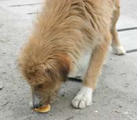 ![]() 頼んでもないのに「なにかください」とおすわりしてみせた。「おすわり」は犬の世界共通語なのだろうか? |