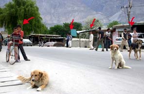 ![]() パキスタン入りした初日は全く犬を見かけなかった。 他の人たちに不審がられないか?パキスタンでは犬は迫害されているのだろうか?とつのる不安。 だからトイレ休憩で立ち寄った街でこいつらに出会った時、喜びいさんでダッシュする私。 |