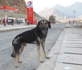 ![]() 街をゆったりと歩く堂々たる体躯の野良犬。サイズはラブラドールくらいある。 |