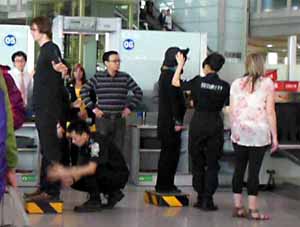 頭の先から足先まで、情け容赦なくボディチェックする検査官。