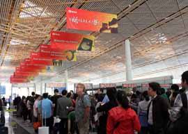 2008年のオリンピックに向けて完成したT3ターミナルは広大で近代的で、中国の自信の程が伺える。