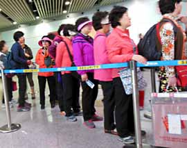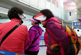 ウルムチ行きの国内線に乗り換える検査所の前で、観光旅行帰りらしきピンクのおばちゃん軍団に遭遇。