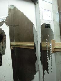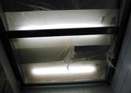 天井からはビニールがどよーん。 「チーン」 エレベーターのドアが開くとそこにはゾンビの群が……って感じの荒廃ぶり。