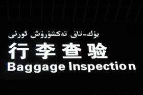 新疆ウイグル自治区はイスラーム教を信仰するウイグル人を主な居住者としており、空港の看板にもウイグル語が併記されている。
