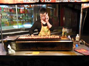 携帯でまくし立てながら慣れた手つきで焼き鳥(60円)をジュージューいわせる。 ものすごく食べたかったけど、腹をこわそうものなら先の旅程がキツくなるので耐えた。辛かった。