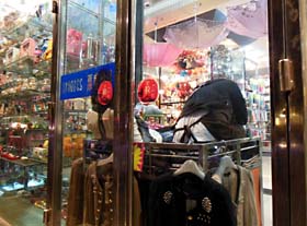お客がいないなら別にいーじゃん、って感じだろうか。 無人の店内でも直立不動、私語禁止の日本の販売業が堅苦しすぎるのかな……と己の価値観が揺らぐ瞬間。 でも先生っ!お尻で商品を踏んじゃいけないと思いまーす!(ビシッ)