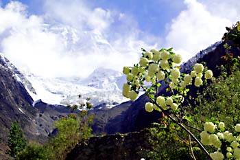 カラコルムハイウェイの休憩所から見上げる名峰ラカポシ(7788m) <撮影・ワイルド・ヘボピー>